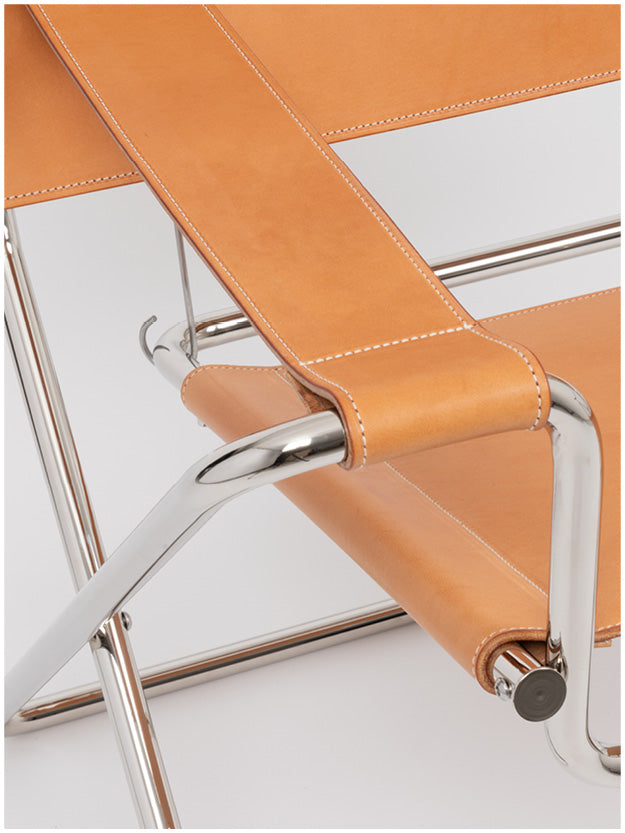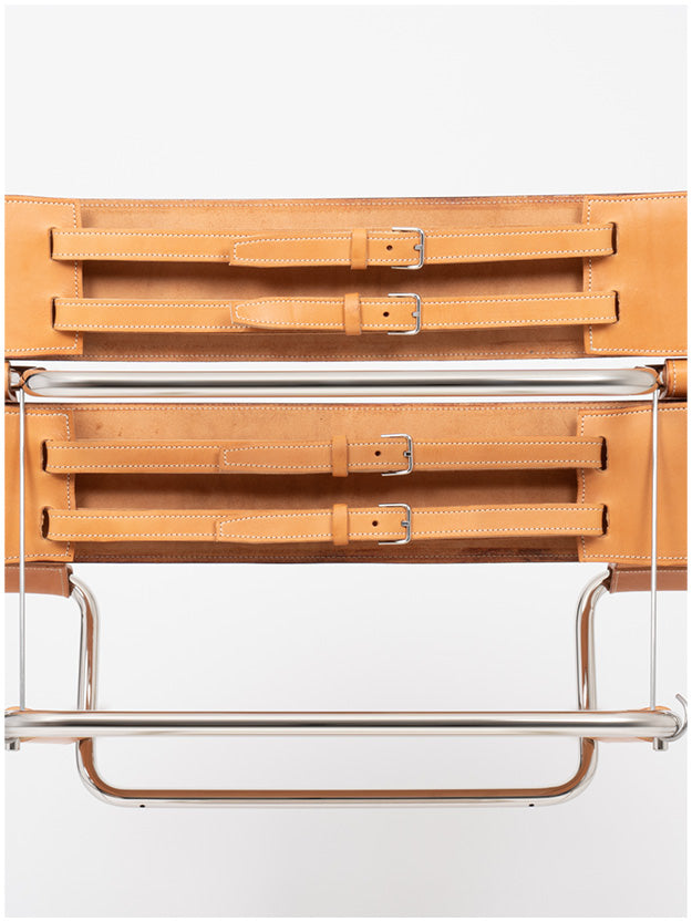 This collaboration stems from a shared passion for craftsmanship, design, and evolving workspaces. It explores the intersection of furniture and mobility. The project revolves around Marcel Breuer’s D4 chair, a foldable, sustainable design from 1927, complemented by a folding stool by Ayzit Bostan and a multifunctional leather bag. All three pieces combine durable materials—vegetable-tanned leather and steel tubing—ensuring longevity and adaptability. Crafted in Germany, they embody quality, mobility, and timeless design.