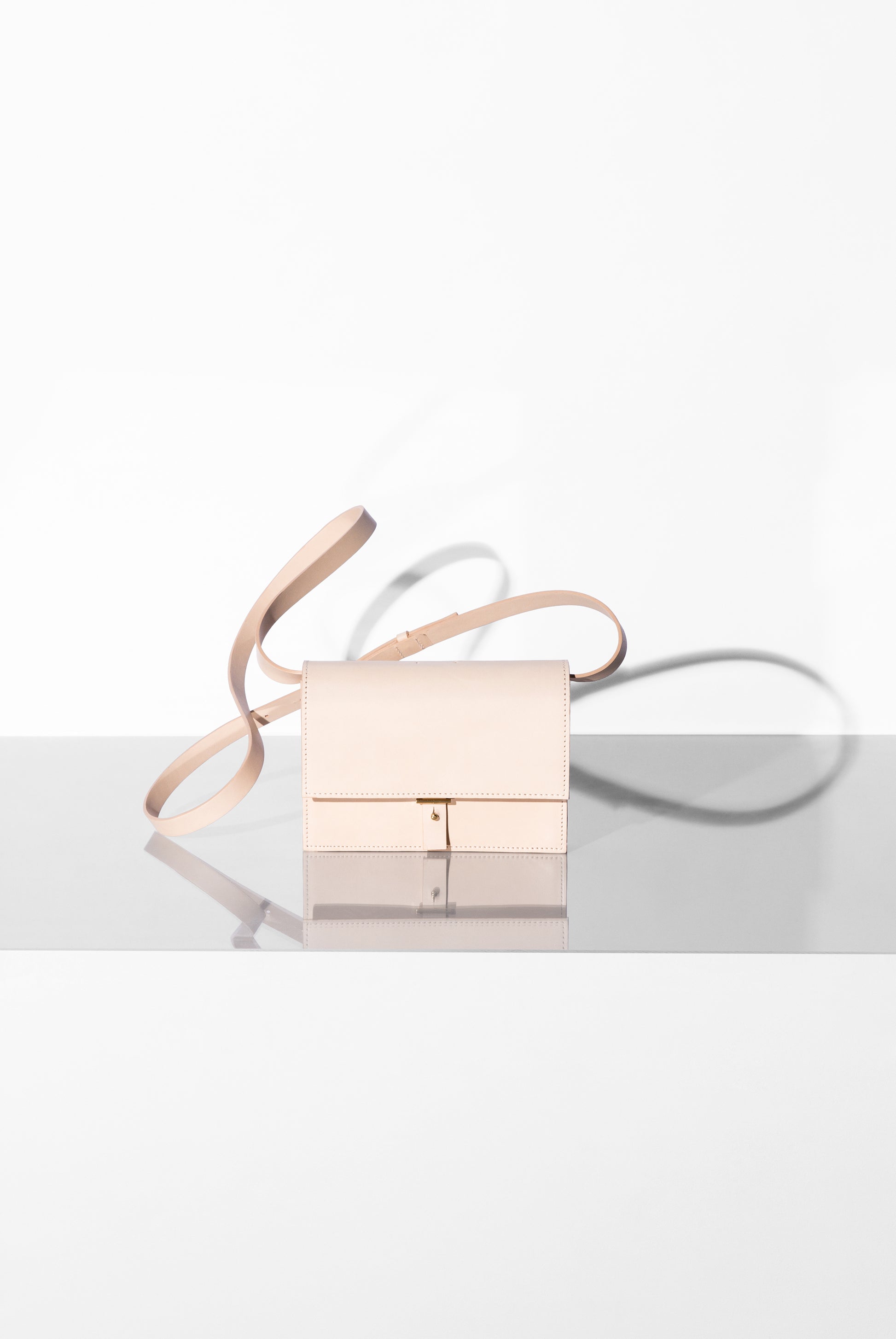 AB 10, the tenth model designed by artist and designer Ayzit Bostan from Munich for the collection. A very compact model for the essentials. The shoulder strap is long and adjustable, allowing the bag to be worn crossbody over a coat or shorter against the body. We first introduced the bag in 2014 and have minimally refined it 10 years later. It is now slightly wider and deeper.