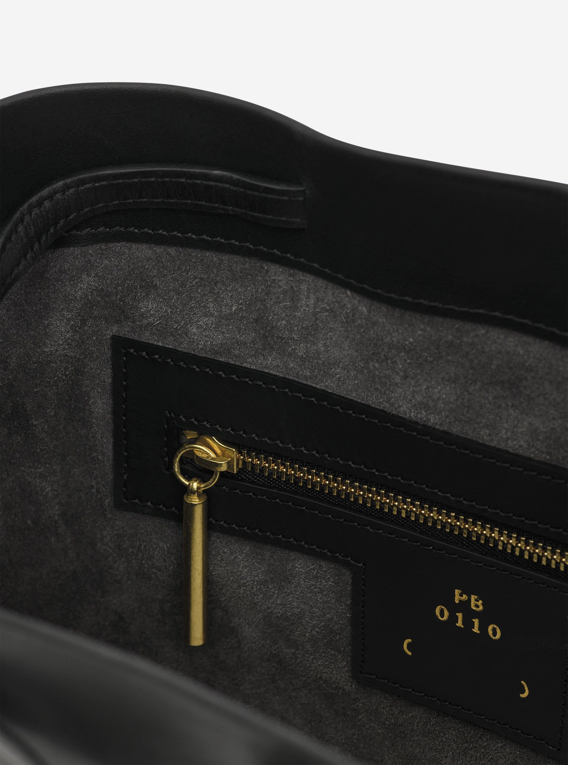 In 2014, we presented our first Bucket Bag. Since then we love this bag, its oval, infinite shape, the way it hugs the body in different ways and its lightness. So there are many reasons to keep thinking about the typology of this bag. For the AB 103.1 model, we combine a soft leather tanned in Germany as the main material and a stiffer vegetable-tanned leather from Belgium for the strap. Both leathers have been awarded the GOLD standard by the Leather Working Group and become increasingly supple over the years.