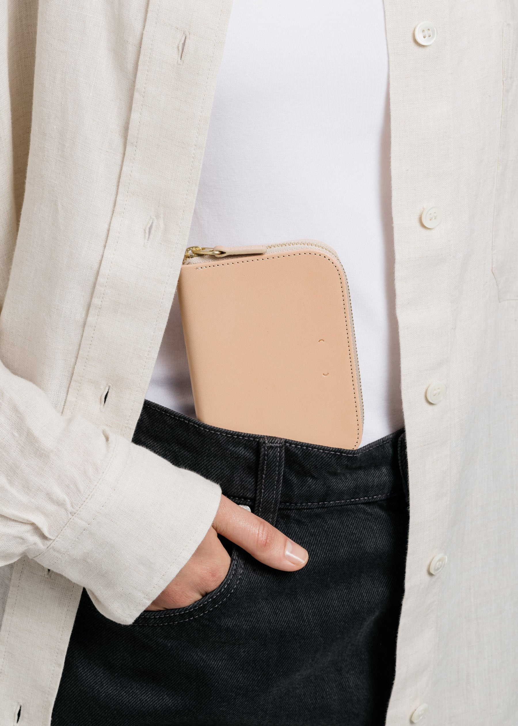 We love to take the time to continuously develop small but important details. For example, designer Christian Metzner created the model CM 3 in 2012. Over time, the content and requirements have changed, so he adapted the design in 2015 and the model CM 3.1 was born. The zipper and the adaptability of the leather keep the content together and compact, depending on the user's sense of order. The four side compartments can hold 4 to 10 cards. To the right and left of the coin pocket, either more cards or folded bills can be placed. We wanted to design a wallet that offers a lot of flexibility and adapts to the habits of the user and not the other way around.