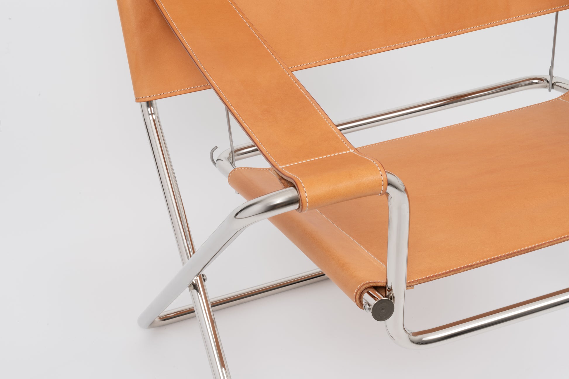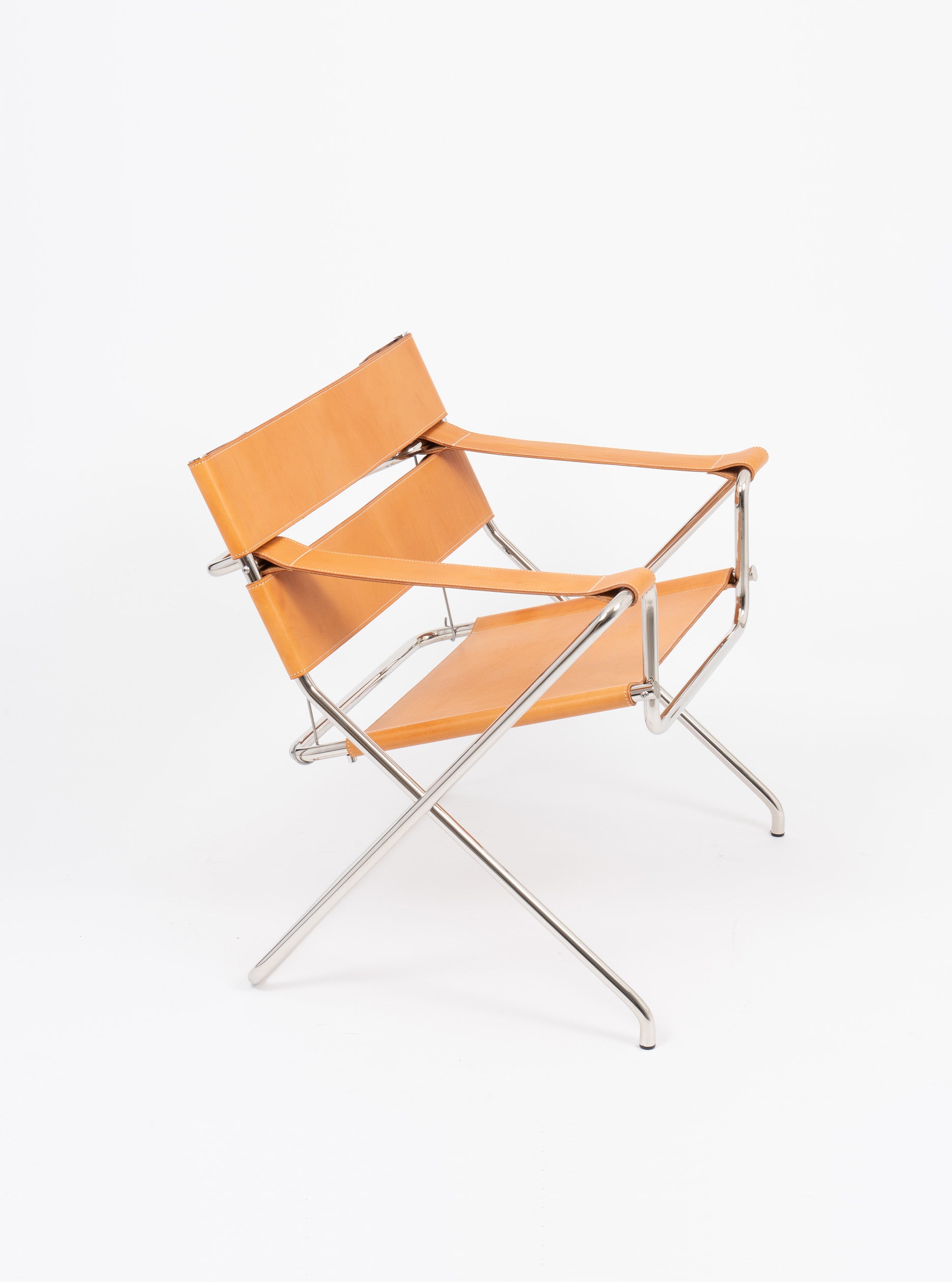 The D4 represents the ultimate reduction to essentials: foldable, easy to store, and transportable. With its economical use of tubular steel and the elimination of side straps, it is not only more material-efficient but also offers enhanced seating comfort. In 1980, the D4 was added to the permanent collection of the MoMA in New York.