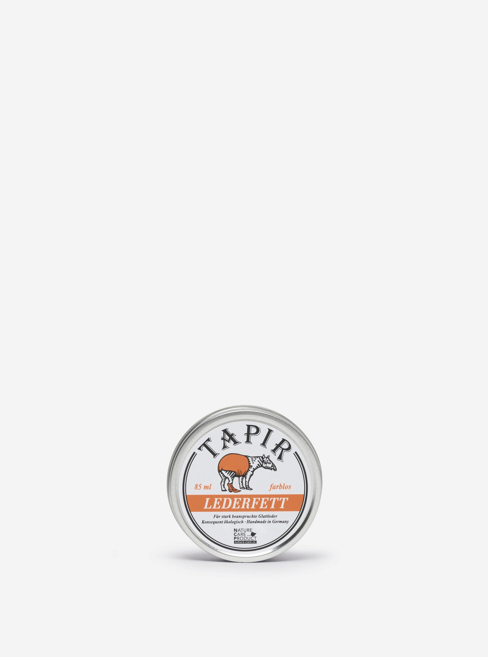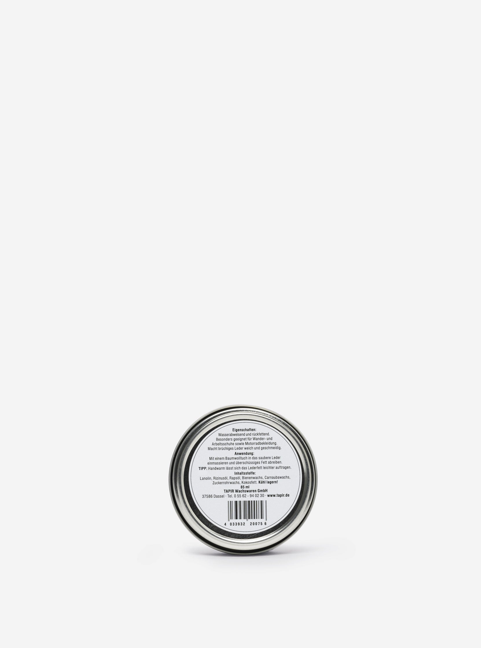 The Tapir Leather Fat is for heavily used leathers our leather bags and accessories and ensures ideal protection against water. This product is highly repellent to water, moisturises and softens old, brittle leather. Made in Germany. Formulated with lanolin, castor oil, rapeseed oil, sugar cane wax, beeswax, carnauba wax, coconut oil. This product comes in a 85ml tin can.